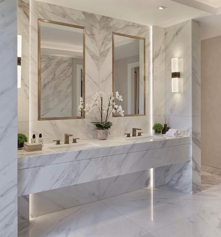 Không gian sang trọng: Đá marble, onyx hoặc granite vân độc đáo sẽ làm nổi bật phong cách.