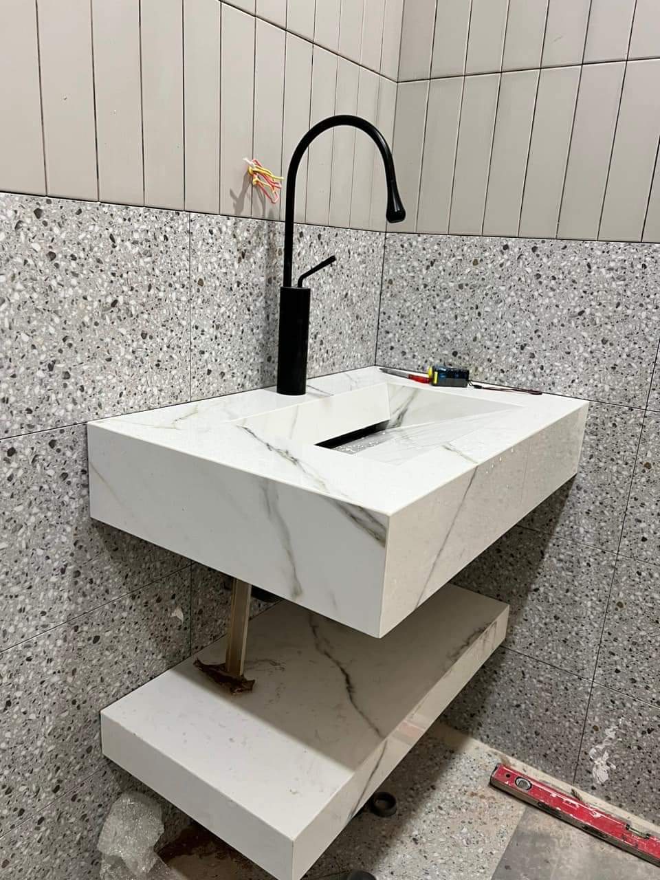 Quy trình thi công đá ốp Lavabo tại Showroom Đá Sơn Chính